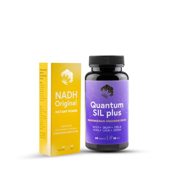 Paket vsebuje: QuamtumSIL PLUS 60 kapsul in NADH Original Instant Power 30 lingvalet |